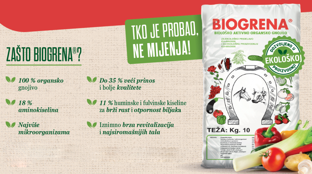 ✔ Povrtnjak – Obogatite tlo prije sadnje i osigurajte zdrav razvoj povrća. Biogrena će povećati rodnost i okus ploda..